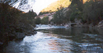 | Le Causse du Larzac Our two proposals are around the Causse du Larzac birthland of the Roquefort cheese. 1- On river Dourbie The first one is on the river Dourbie, offering sheer countryside experience. We have found there a wonderful hotel right on the river at the entrance of the gorges. Low prices but great satisfaction. This is the real authentic "France profonde". The nearest big city is Millau.  |