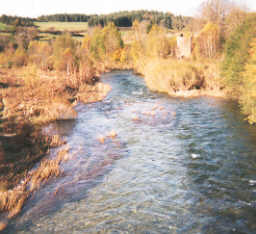 | L'Allier  The river Allier, was one of our best salmon streams. One of the most impressive course for this fish as the sea access is the estuary of the Loire in Nantes. This probably represents a run of over 700 kms. Salmon is in a restauration period and if nice fish can still be seen, no one is allowed to fish salmon. Fishing now for brown trout and grayling. Downhill the village flows the Allier. Many tributaries and other rivers are of easy reach in the neighbourhood. We have pointed out this place for grayling backseason fly fishing but trout fishing is quite good as well during the season. Trout season March 20th to the 3rd Sunday of September. Grayling season, mid May to late October and later. Peak season of the grayling is from mid September to mid October (along with the nice colours of the autumn and the best season for the mushrooms cèpes).  |