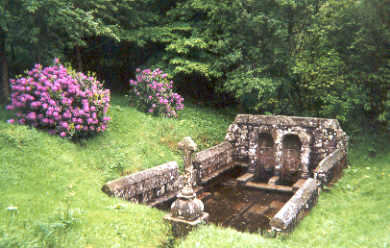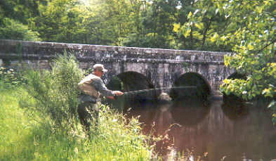 GourmetFly.com Inland BrittanyInland Brittany ARGOAT REGION The Argoat name means Land of woods in ancient Celtic Breton. The name is given by opposition to Ar-Mor, the neighbour Land of sea. In fact the landscape features a lot of deep forests but also moor-hills and wet meadows, big granite rocks, and a lot of wild rivers. This is the former Brittany of otters and wolves, and still the best woodcock coverts in France. We can offer to stay in a wonderful "gîte rural", offering three exquisite Cottages, or at picturesque village hotels. This is the birthland of the now worldwide famous Epagneul Breton (French Brittany spaniel). Chapelle Saint Fiacre Fly-Fishing There is only trout there. They're nice strong little brownies quite dark, with red dots and a bit of yellow. The local habit is to wade and fish the water upstream from you, very often under a sort of canopy tunnel. It is possible to use dry fly sucessfully quite early compared to the rest of France by mid-March and continues to end of the season. Fishing, on public stretches. Boulders of Huelgoat Guide - Our local guide is a real woodman, probably having an ancestor looking like the Breton poacher or old style Breton ghillie -of the picture. He is definitely not a poacher ! he looks much younger but his knowledge of the countryside is probably the same. Mon guide breton by Joseph Oberthür circa 1880 Choosing a puppy during a fishing trip in Brittany... These pictures was shot during a fishing trip in June 2002 when my friend Kirk Hogan wanted to visit the Kennel de Cornouailles. We stayed near Callac birthland of the Brittany spaniel. In this neighborhood le marquis du Pontavice and the count of Kermadec created our so famous épagneul breton. The grandfather of Hervé Bourdon created the kennel in the early 1900's and participated the official launching of the breed in 1907. The kennel -the oldest of France- is held by the same family since this time. French Brittanies Brittany is the birthland of the famous dog named French Brittany spaniels -Epagneul breton- The best breeders are found around the little town of Callac in the part called Argoat (Woodlands in ancient Celtic). We are pleased to arrange any visit to a top breeder kennel and maybe also help you import a puppy to your country. See all details below. A days fishing in Brittany... Early morning everybody's still sleeping at the gîte. We must buy our fishing permits at the local café. On the way to the river we stop to visit a famous Brittany breeder ...and resist the possible temptation of a new pup to bring back in the US. At the moment of farewell, the breeder warns us about the numerous poulpiquets, djinns and trolls that we are likely to meet near the water when dusk is coming. This is not a grave but an ancient washing place lavoir at a captured spring. The river is rather secret with bushy banks and there are stories of lost hikers. Maybe the poulpiquets must be blamed for these hazards. A number of these colourful little guys are caught. Bigger fish appear later at dusk but are not easy to catch. Plusquelleg - June 2002 Brittanies are "HPR" dogs - They Hunt, Point & Retrieve