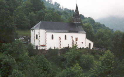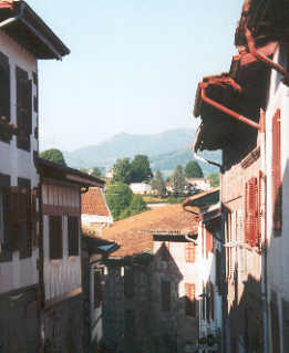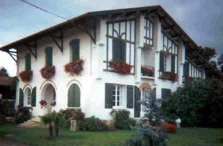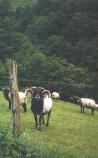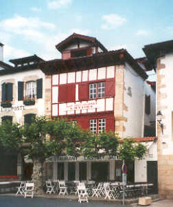 Fly Fishing The network of rivers is huge and varied. It ranges from quite wide shallow parts where local anglers also catch salmon and sea run trout, to high narrow -sometimes bosky- mountain torrents. You will be fishing for wild brown trout only. We do not offer salmon or sea-trout fishing as the results would be too unpredictable. The water is most often nicely coloured -with shades between pale mint and esmerald gree- and running on a rocky bottom is also most often extremely clear. The Baztan tributary of the main Nive as you see the banks can quite steep ! Fishing particulars Season - The leagal season is from mid-March to the 3rd Sunday of September. Because of the ocean's influence the snows never stay long on these mountains and there is no runoff. Early season fishing -around Easter- can be quite good compared to the rest of the country. Difficulties - This is generally a region of difficult fishing. Due to the clarity of the water trout are quite spooky. As for physical shape, no long mountain treck is required but the river is often found under quite steep meadows. Wet wading on the rocky soil is more comfortable with flet soles but going down the slope with often slippery wet grass, is tricky with the same felt soles. So far, no one has found a real satisfactory solution. The highest streams are best fished with a rather short rod, because you will often be wet wading under a tunnel of trees like on some of the pictures displayed. Egurgiko erreka - Tributary of the Iraty at the Spanish border The low hills are in fact the top of high mountains Alt 1.200 meters Other Highlights The main pleasure for the eyes is offered by the beautifully kept villages. There is an outstanding harmony between the landscapes and the unique local architecture. The Basques have wisely kept their mountains in beautiful shape. We can say that our favourite spots -where we will send you- are not disturbed by any visual pollution. You can tell how rich, strong and old is the Basque culture, just by quickly looking at the houses, the villages, the churches and their cemetaries. These exterior wonders are of course completed by a rich gastronomic tradition. Basque house near Saint Etienne de Baïgorry Gastronomie The food in the Pays Basque, is one of the most picturesque of our country. The choice of raw material is huge, proceeding from three very different sources (the mountains, the plains around les Gaves, and the ocean). The Spanish influence is also very important though there is Basque culture present on both sides having little to see with neither the main French nor with the Spanish gastronomic culture. Basque people are keen gourmets and cooks. Many male Spanish Basques are members of clubs named Txokos or Sociedad gastromica, where they congregate, talk and cook at their turn. These clubs are even more closed to women than the (worse) British clubs, but it does not mean that the Basques do not like the cuisine of their wives, mother or grand-mother... au contraire ! Black head "Manech" ram