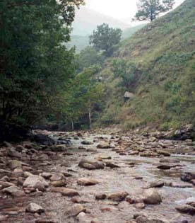 La côte des Basques in Biarritz Introduction The Basque backcountry is perfect to combine sightseeing, gastronomy, and trout fishing in the French Pyrenees. You will usually join the Basque Pyrenees, from the Basque seashore by Saint Jean de Luz or Biarritz - There are found the main train stations and the airport. We can arrange for you a preliminary stay on the seashore. Our service includes touring indications for the whole area, as well as gastronomic tips to use at the famous mariscos (seafood) and tapas bars or restaurants in Spain at the border towns of Irun and Hondarribia.. Accommodation in the mountain... Quaint mountain Hotels - We are recommending to use quaint mountain hotels all situated in the heart of breathtaking landscapes and serving excellent menus of local cuisine and a funny authentic atmosphere. The rooms are simple but offer all the necessary comfort and have their private bathroom. With the so many places to visit and rivers to fish, such a holiday is not meant to spend more time in the room than the necessary night and shower maybe completed with a short nap. Small Luxury Hotels - We can offer the same program using a small luxury hotel. It could be appreciated by non fishers intending to concentrate on really enjoying a rest including long naps and reading in the room. This luxury hotel is in the center of a small town allowing to walk in the streets around the hotel. Itxassou - La Nive at the "Notch of Roland" - picture courtesy of JJ Orzan's salmon anglers association website - http://asnives.free.fr/ Beech forest and torrent of the Monte Iraty